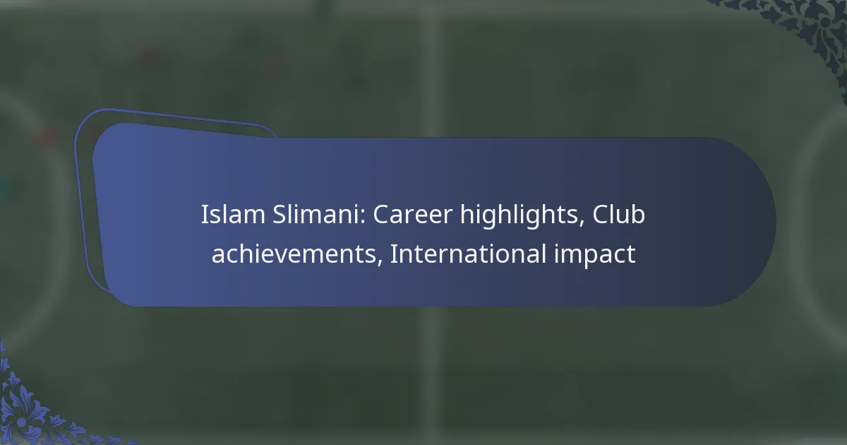 Islam Slimani has achieved significant success at various clubs throughout his career, marked by numerous trophies and individual accolades. His contributions have been pivotal in securing league titles and cup victories, showcasing his talent as a prolific striker.